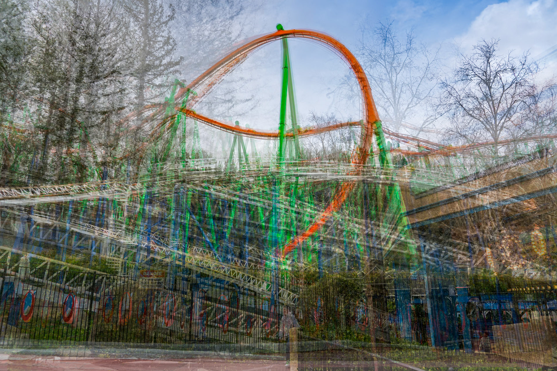 This body of work was inspired by photographer Pep Ventosa, who invented and perfected this technique of seeing completely around a scene or object at once by shooting in a circle and layering the images over one another, then playing with opacity and other effects with unlimited potential permutations. The results are images not only hauntingly and painterly beautiful but seeing all angles of anything these days is politically and culturally an improvement.